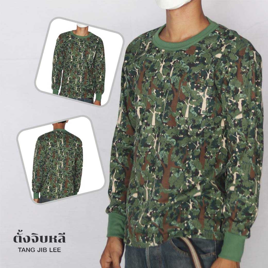 เสื้อยืดลายพรางป่าไม้ คอกลม เเขนยาว