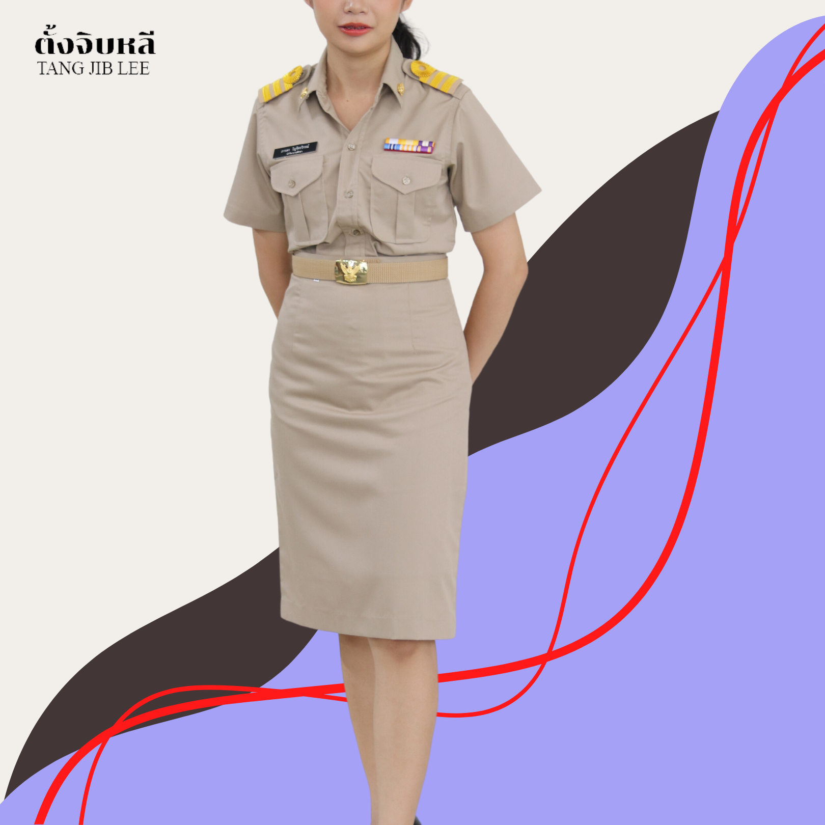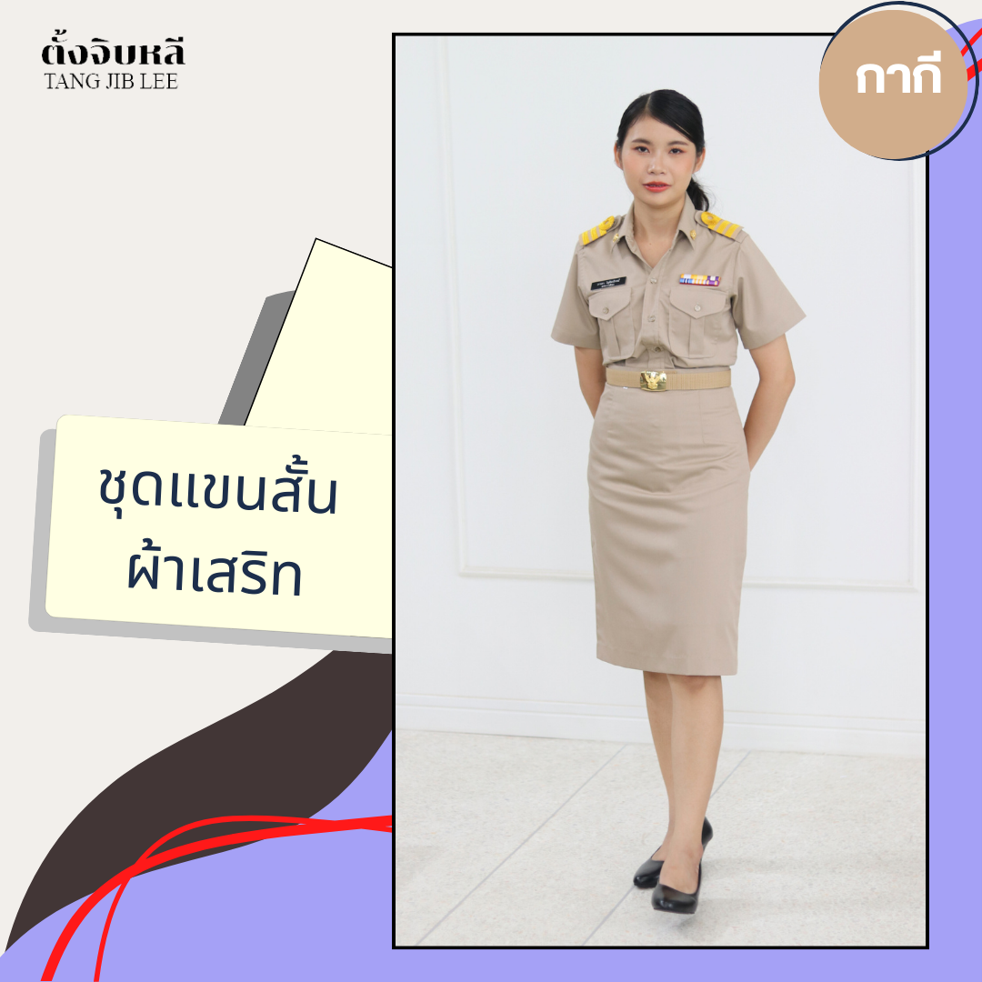ชุดข้าราชการกากีผ้าเสริทแขนสั้น