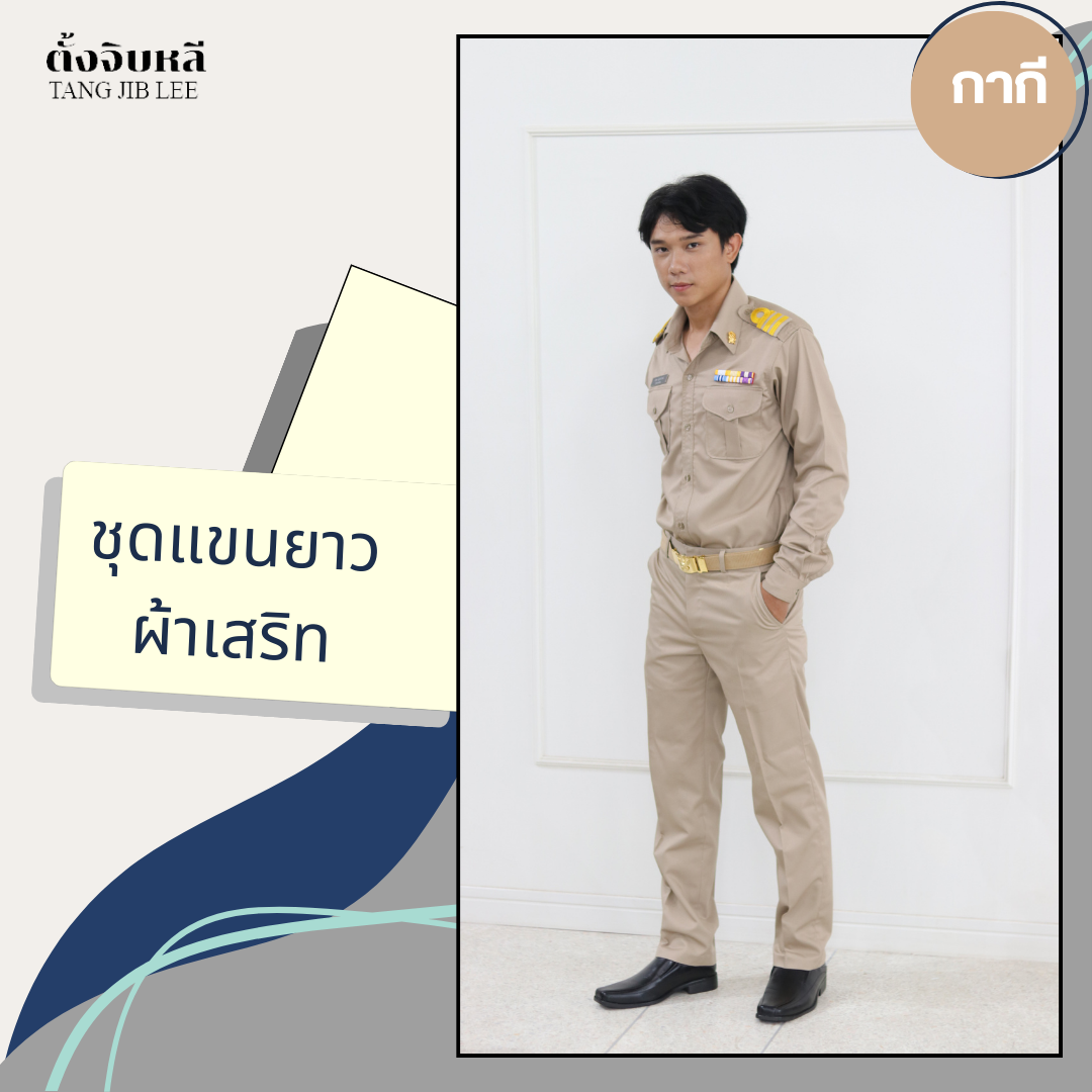 ชุดข้าราชการกากีผ้าเสริทแขนยาว