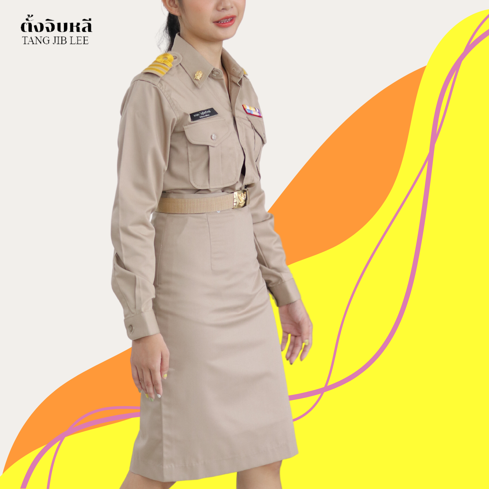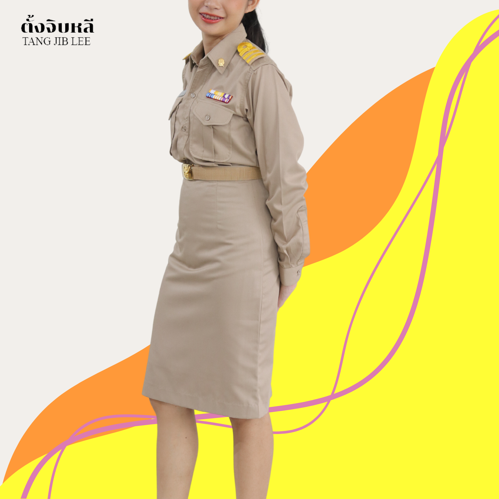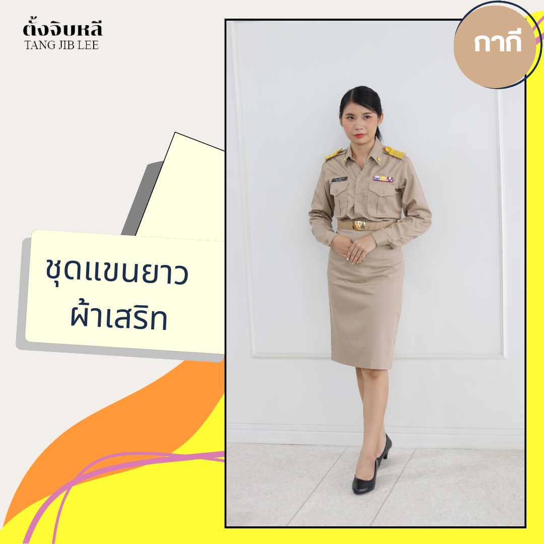 ชุดข้าราชการกากีผ้าเสริทแขนยาว
