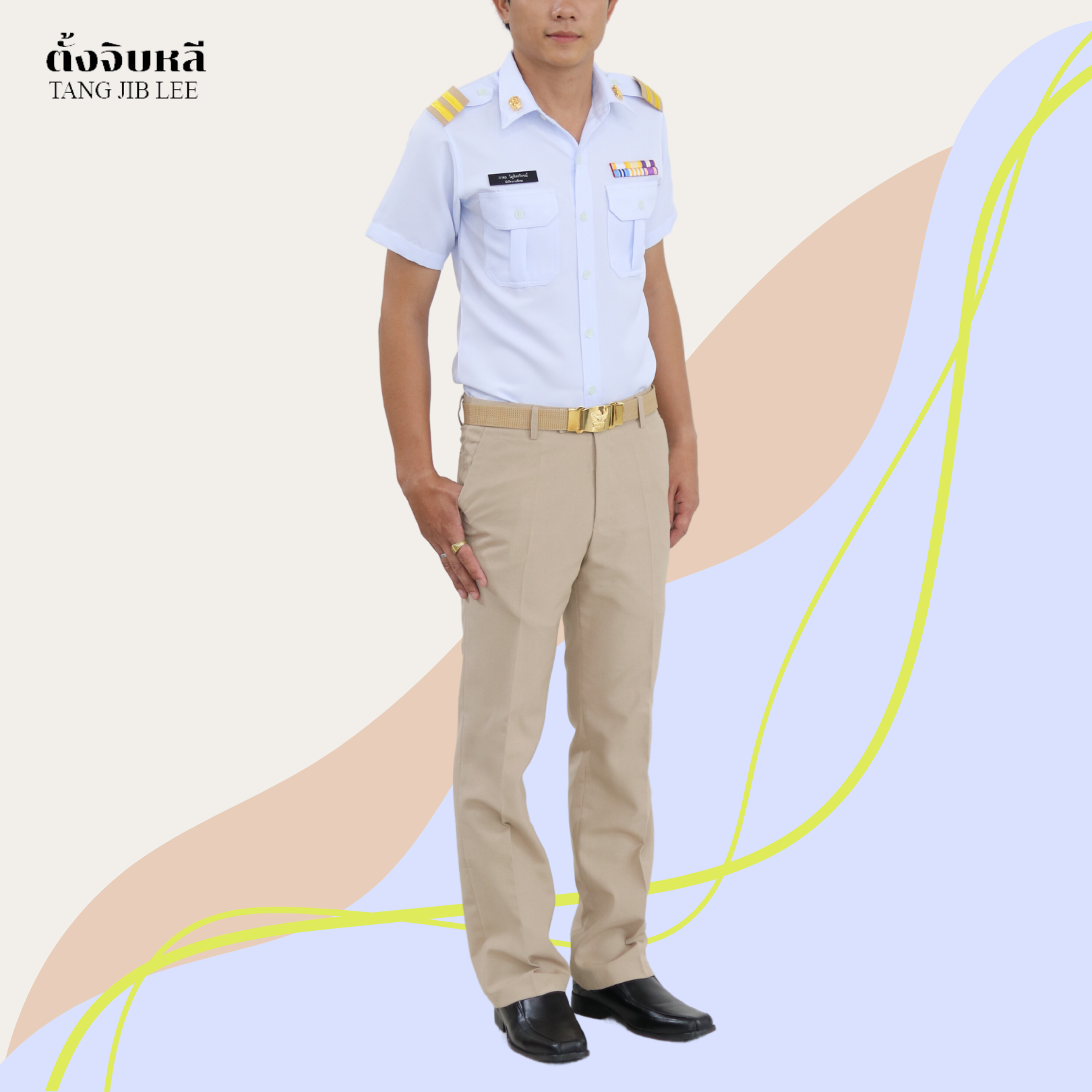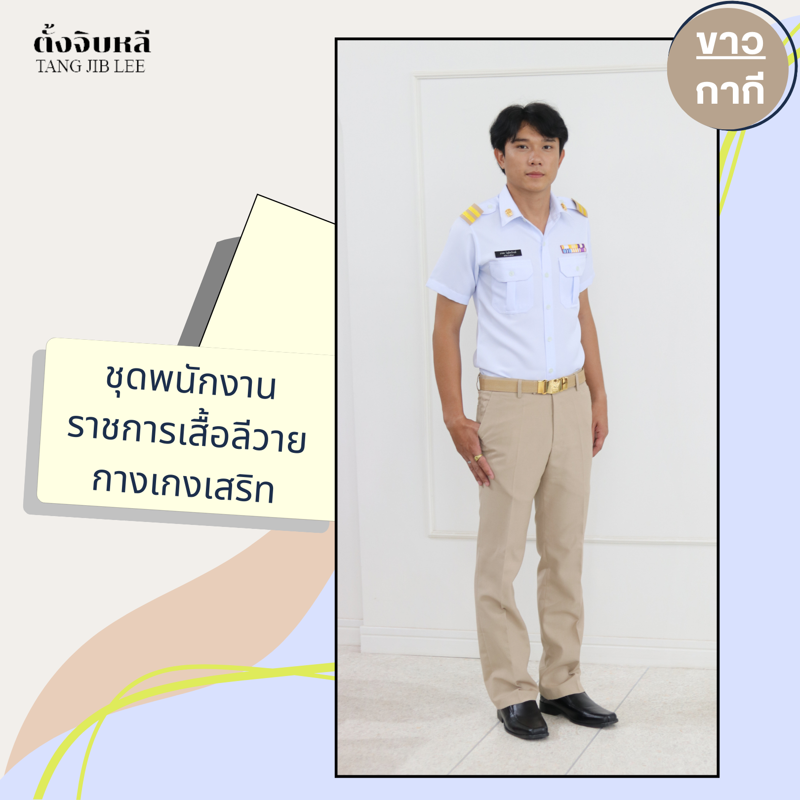 เสื้อลีวายคอปก กางเกงกากีผ้าเสริทขายาว