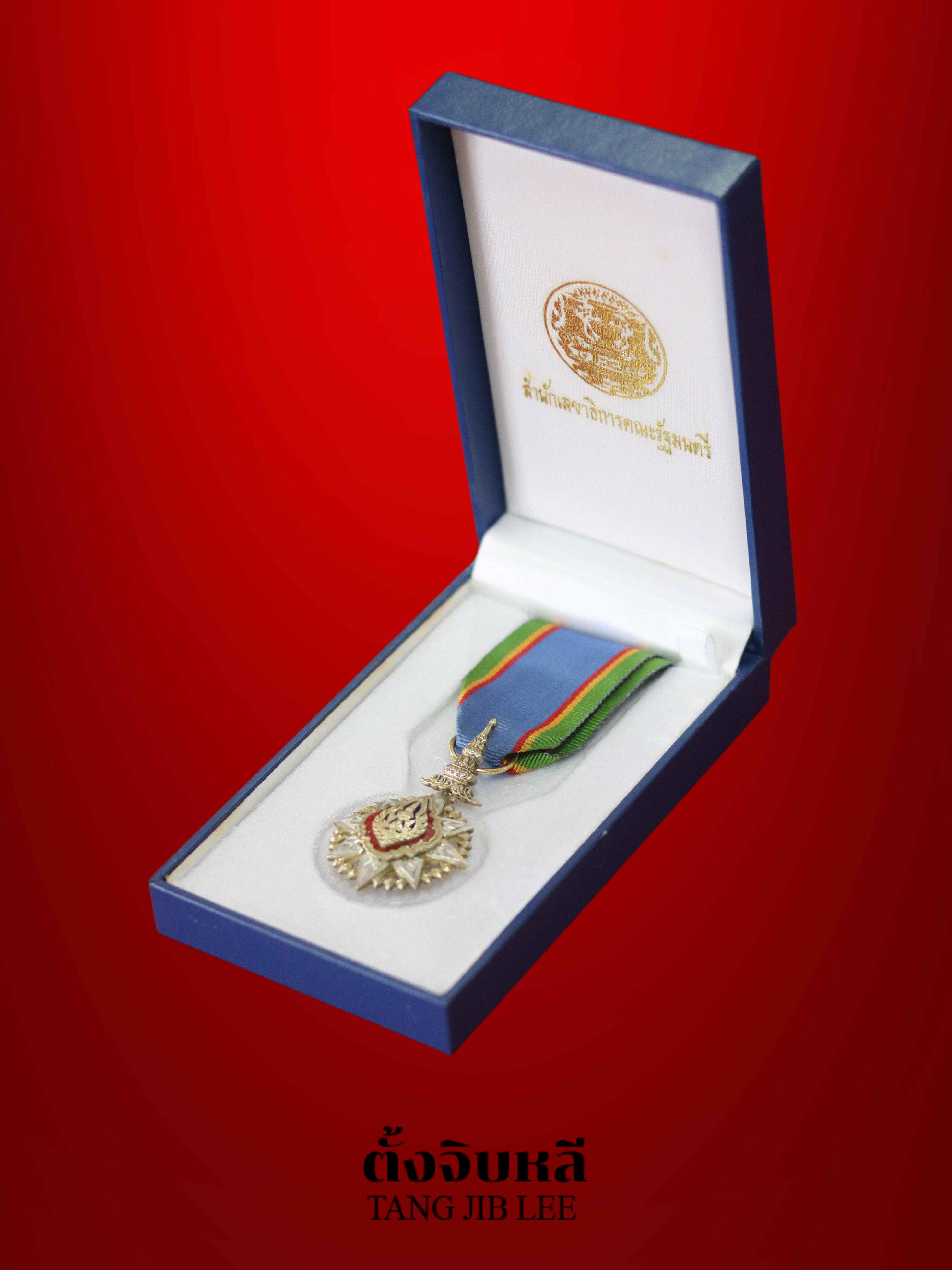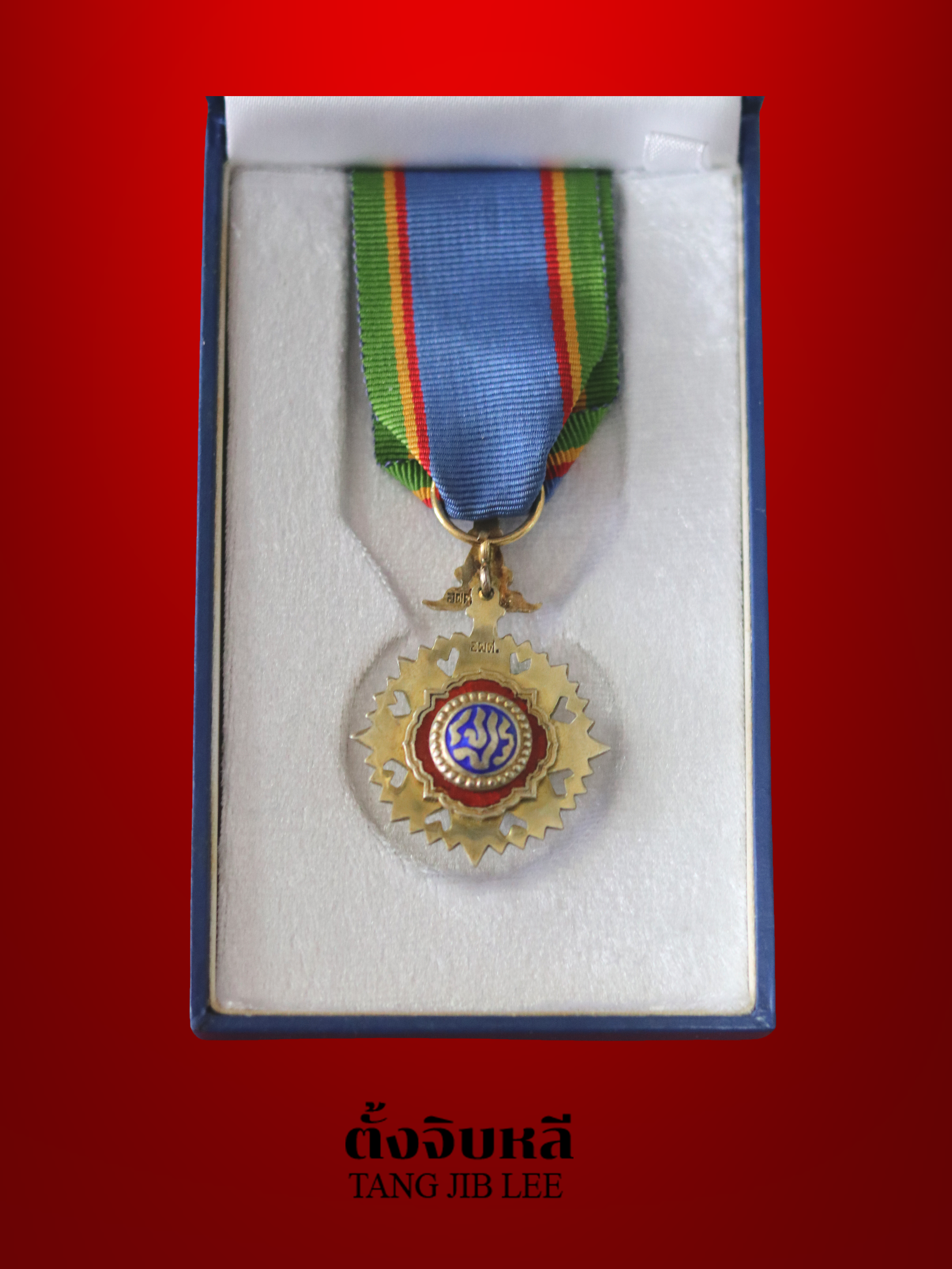 ชาย – ดวงตราห้อยกับแพรแถบ ประดับที่อกเสื้อเบื้องซ้าย