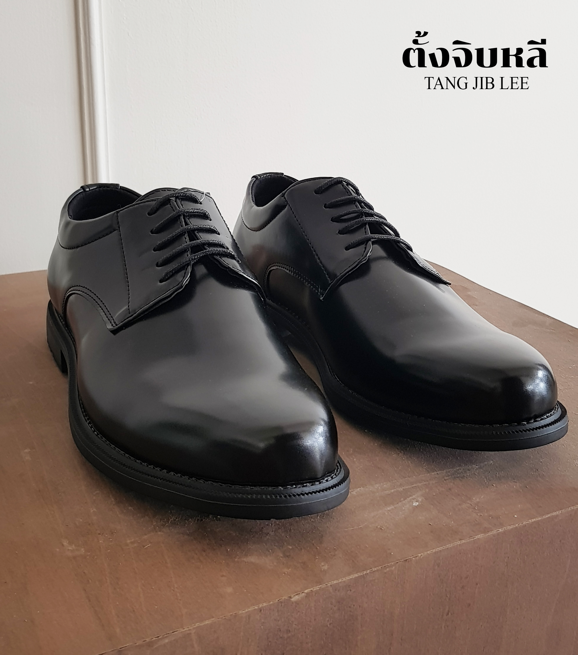 รองเท้าคัชชูสีดำ ชาย รูเชือก 5รู ไม่มีตาไก่สำหรับงานทางการ