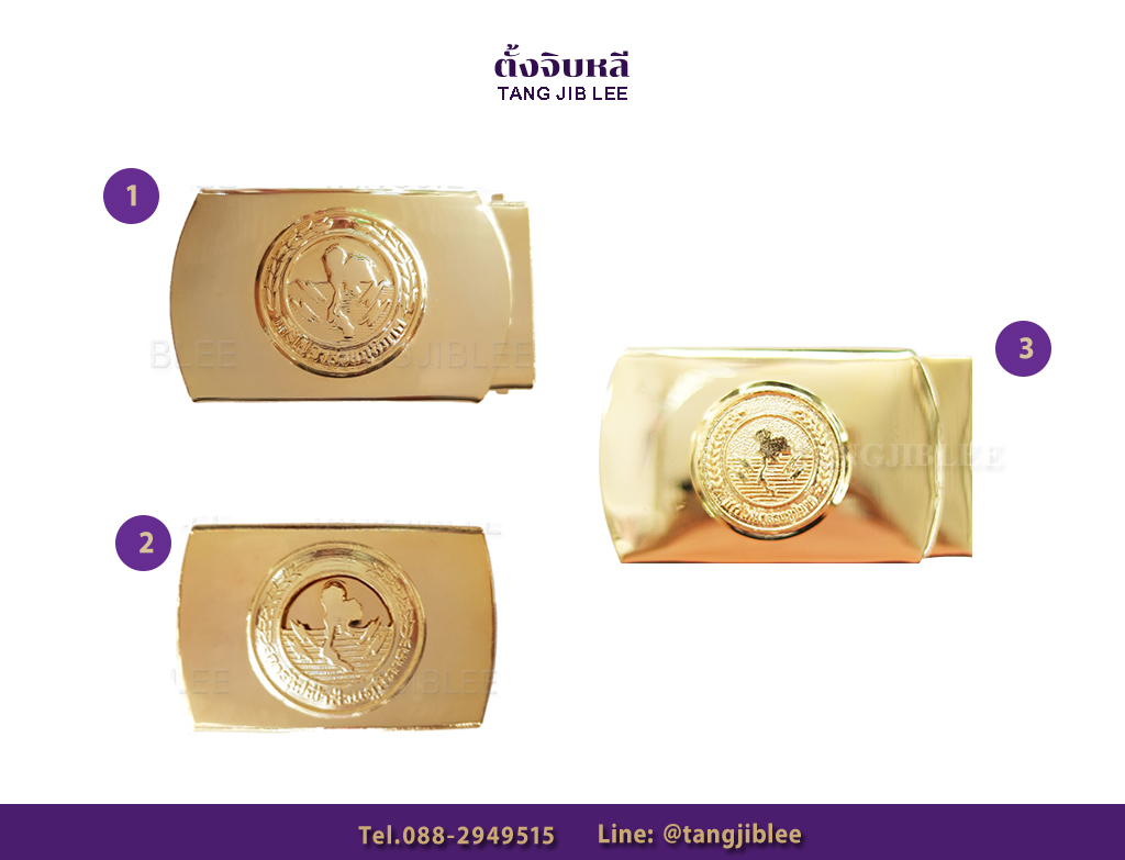 3.) แบบพื้นทราย ครุฑชุบเงา ปลายเข็มขัดอยู่ด้านนอก ฟันเดี่ยว ปลายสายไว้ด้านนอก