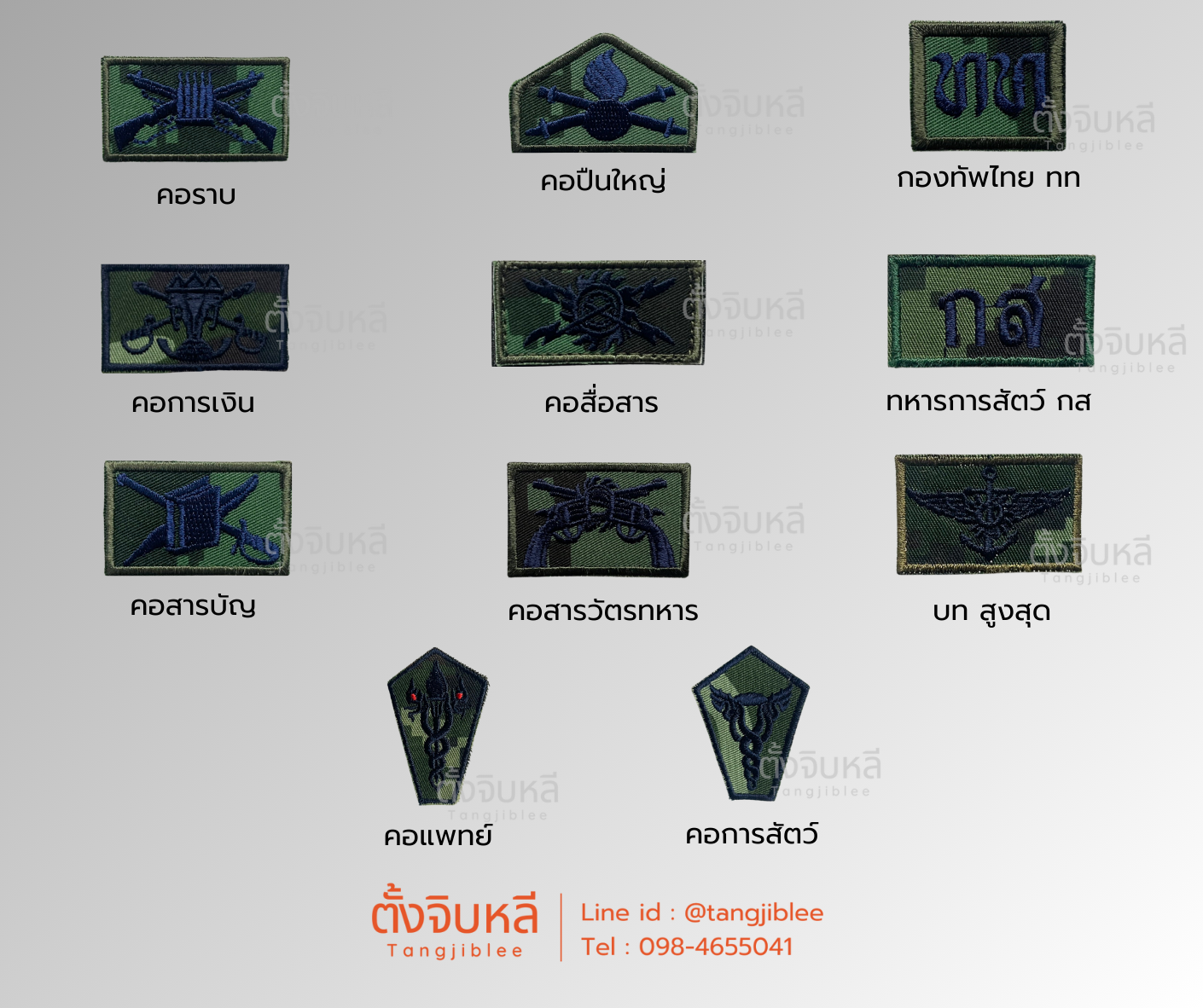 เครื่องหมายอาร์มผ้าชุดฝึกลายพรางดิจิตอล ทหารบก เหล่าทหารและตัวอักษรย่อ