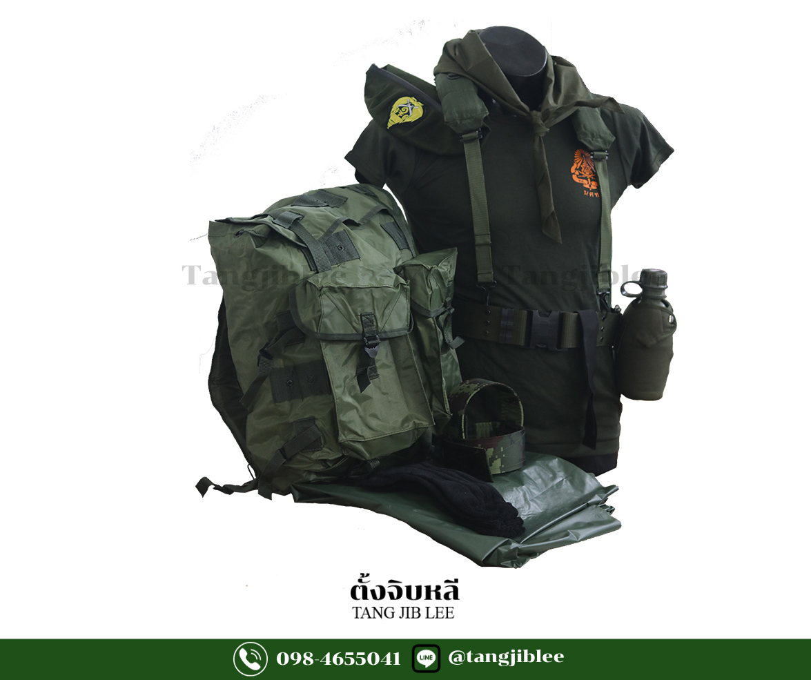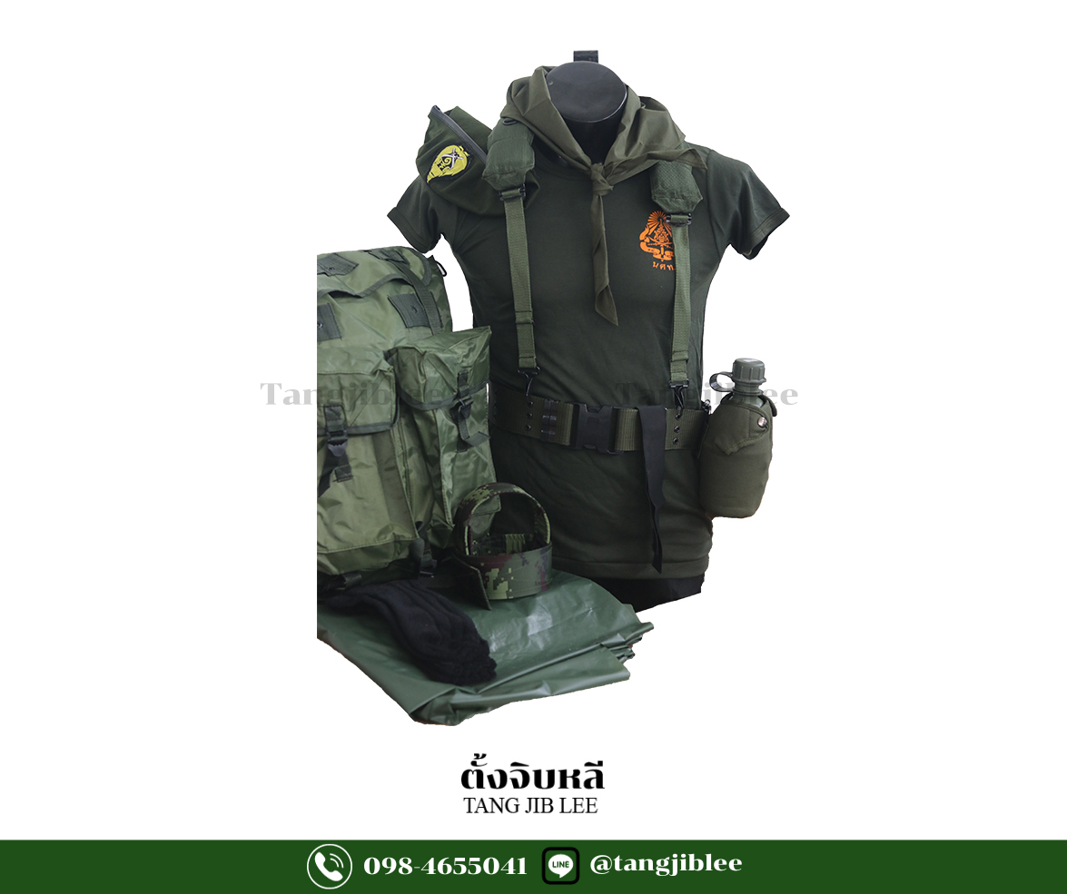 | นักศึกษาวิชาทหาร | กระติกน้ำสนาม, ครบเซ็ต 11 ชิ้น, ซิ่งผ้าติดตีนตุ๊กแก, ถุงเท้าดำ, ผ้าพันคอสีเขียว, สายรัดท็อป 1.5 สีดำ, สายโยงบ่า, หมวก รด., เข็มขัดสนาม, เป๋สนามสีเขียว, เสื้อยืดรด., แผ่นรองนอน |