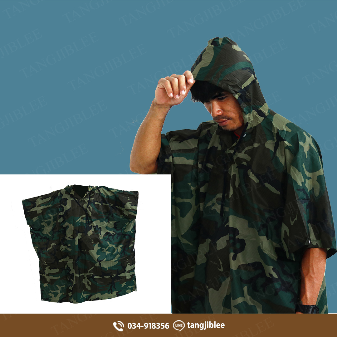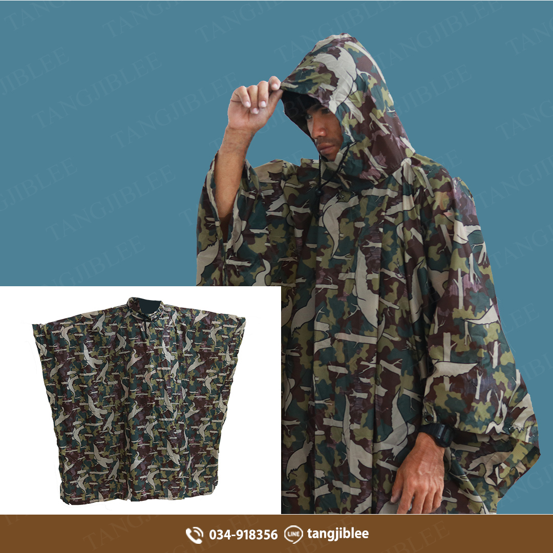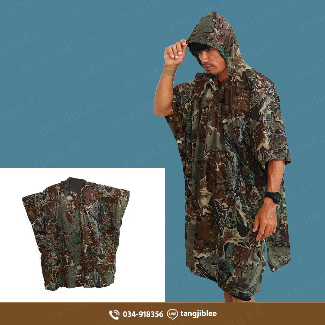 เสื้อกันฝนลายพรางเขียว ปีกค้างคาว