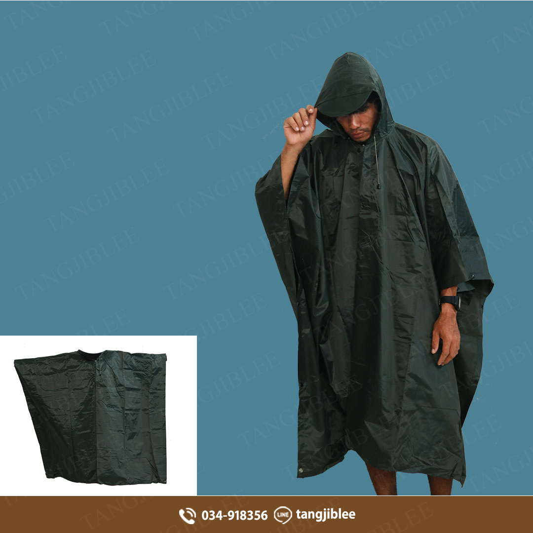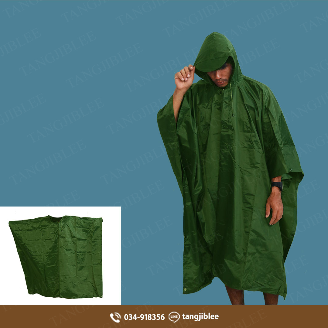เสื้อกันฝนแบบกระดุมซิบ มีคลุมหัว