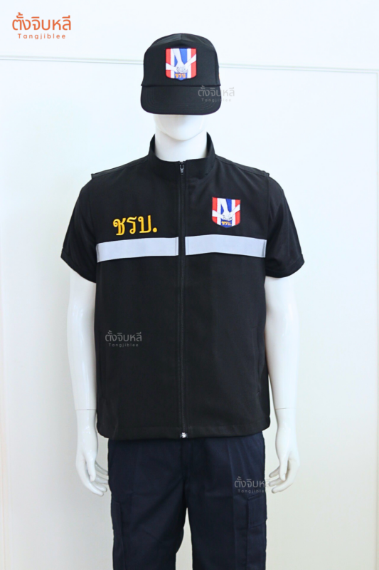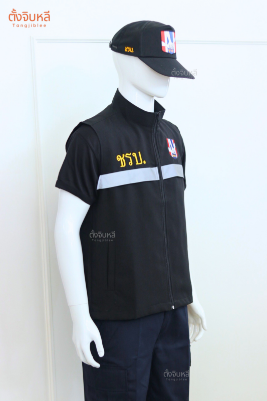 เสื้อกั๊ก ชรบ. สีดำ มีแถบสะท้อนแสง