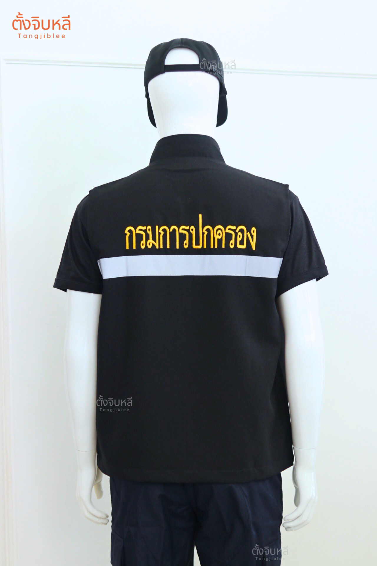 เสื้อกั๊ก ชรบ. สีดำ มีแถบสะท้อนแสง