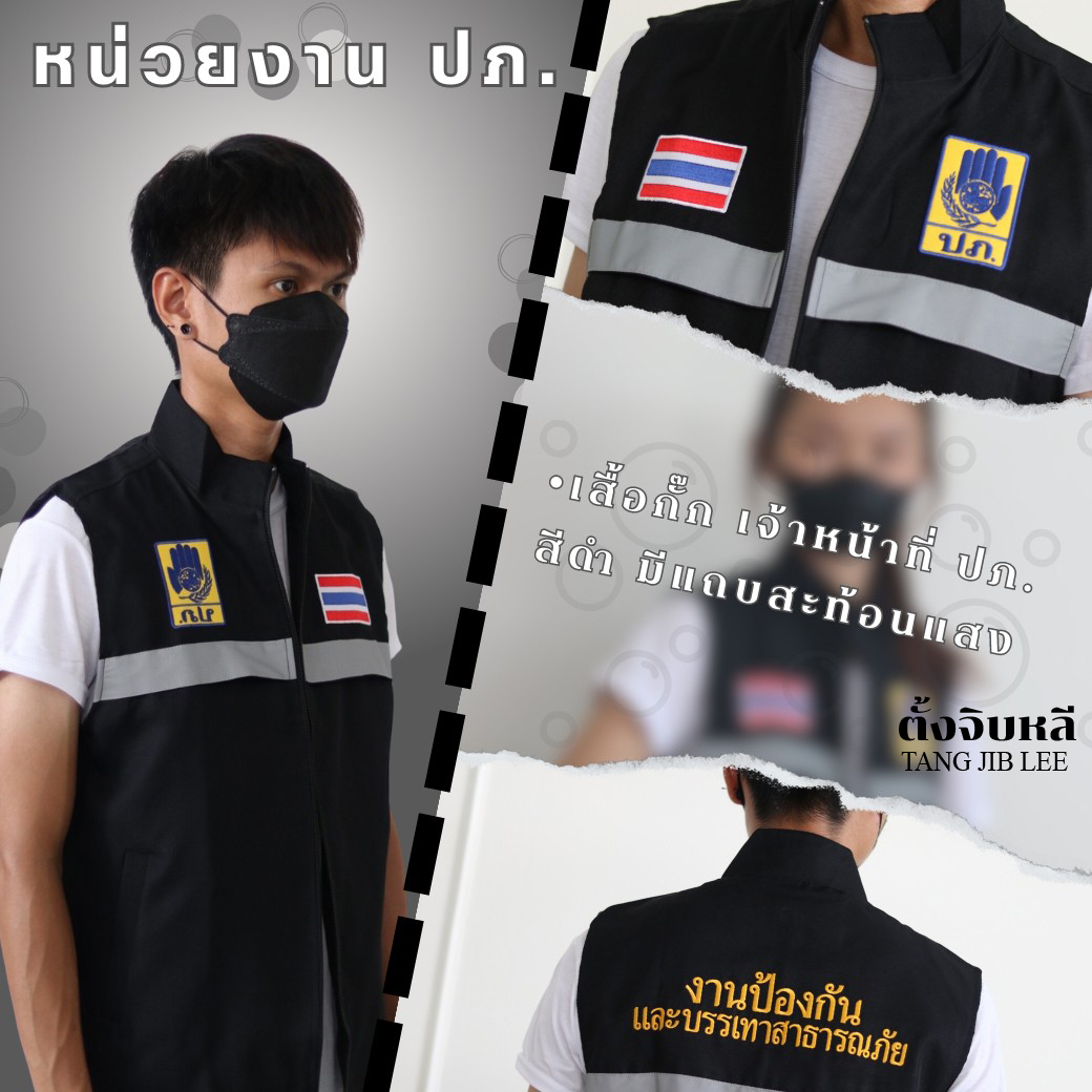 เสื้อกั๊ก ปภ สีดำ มีแถบสะท้อนแสง