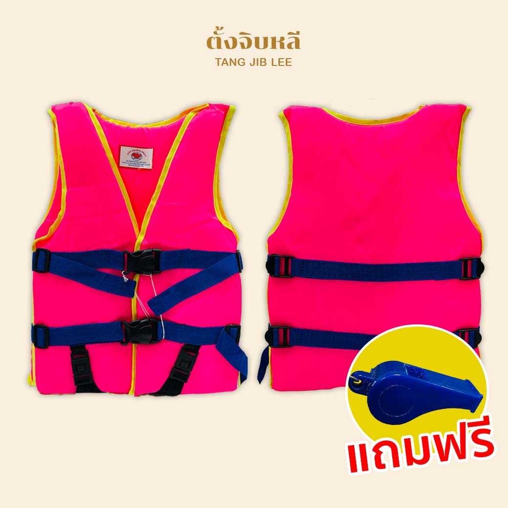 เสื้อชูชีพ สำหรับเด็ก แถมฟรี!!!นกหวีด อุปกรณ์รักษาความปลอดภัย สีชมพู