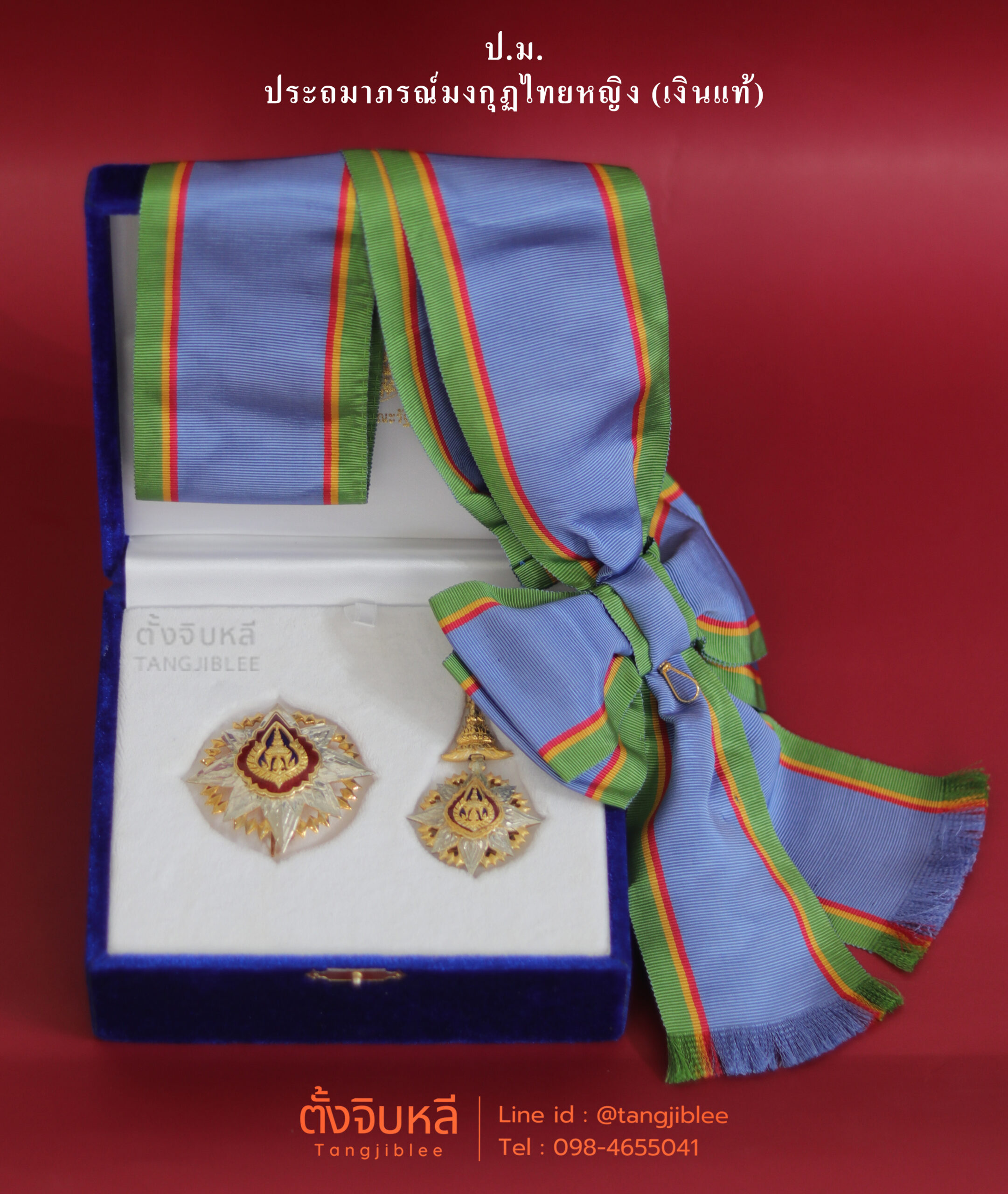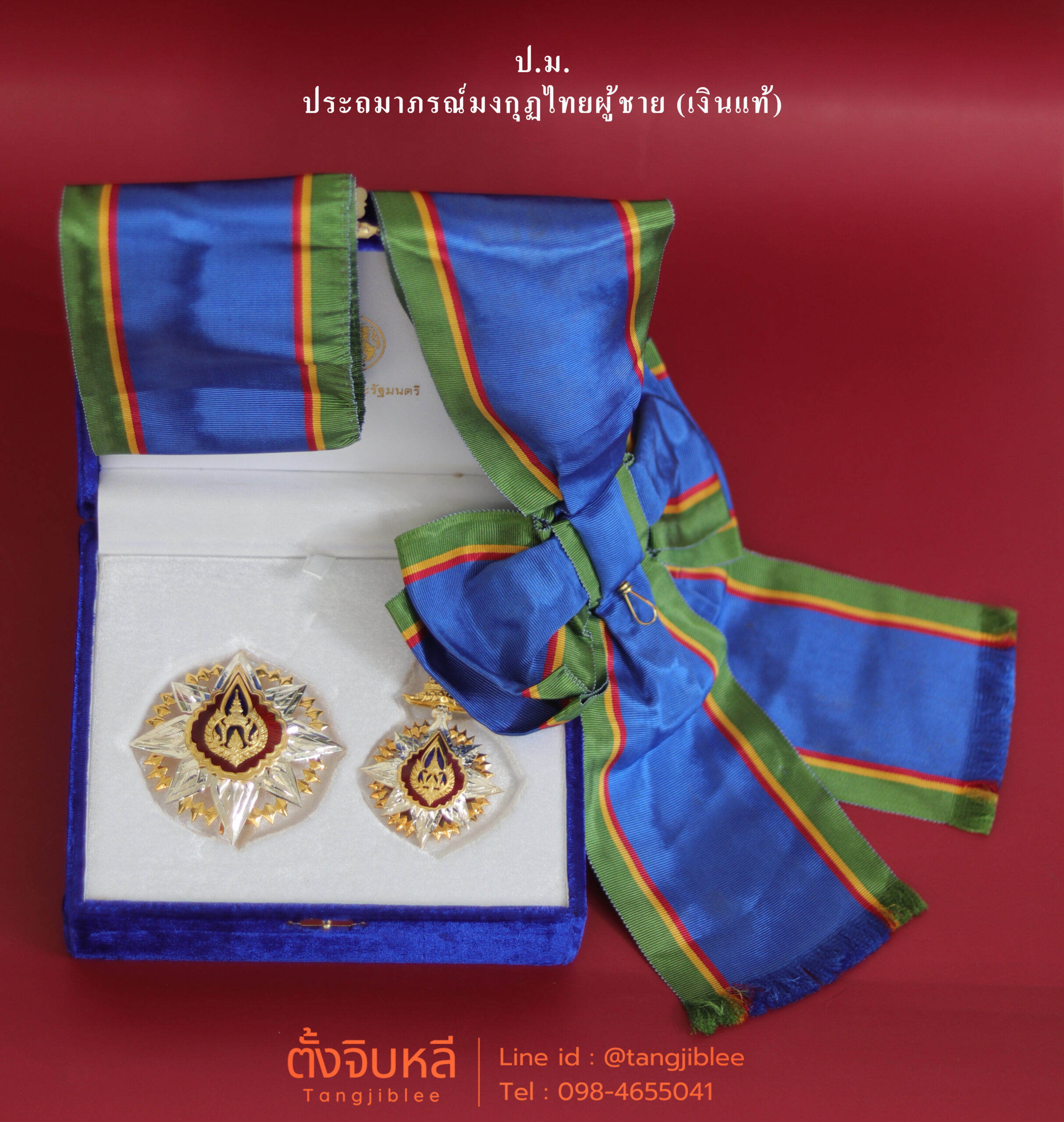 สายสะพายเครื่องราชประถมาภรณ์มงกุฏไทย ชายและหญิง (ป.ม.) เงินแท้