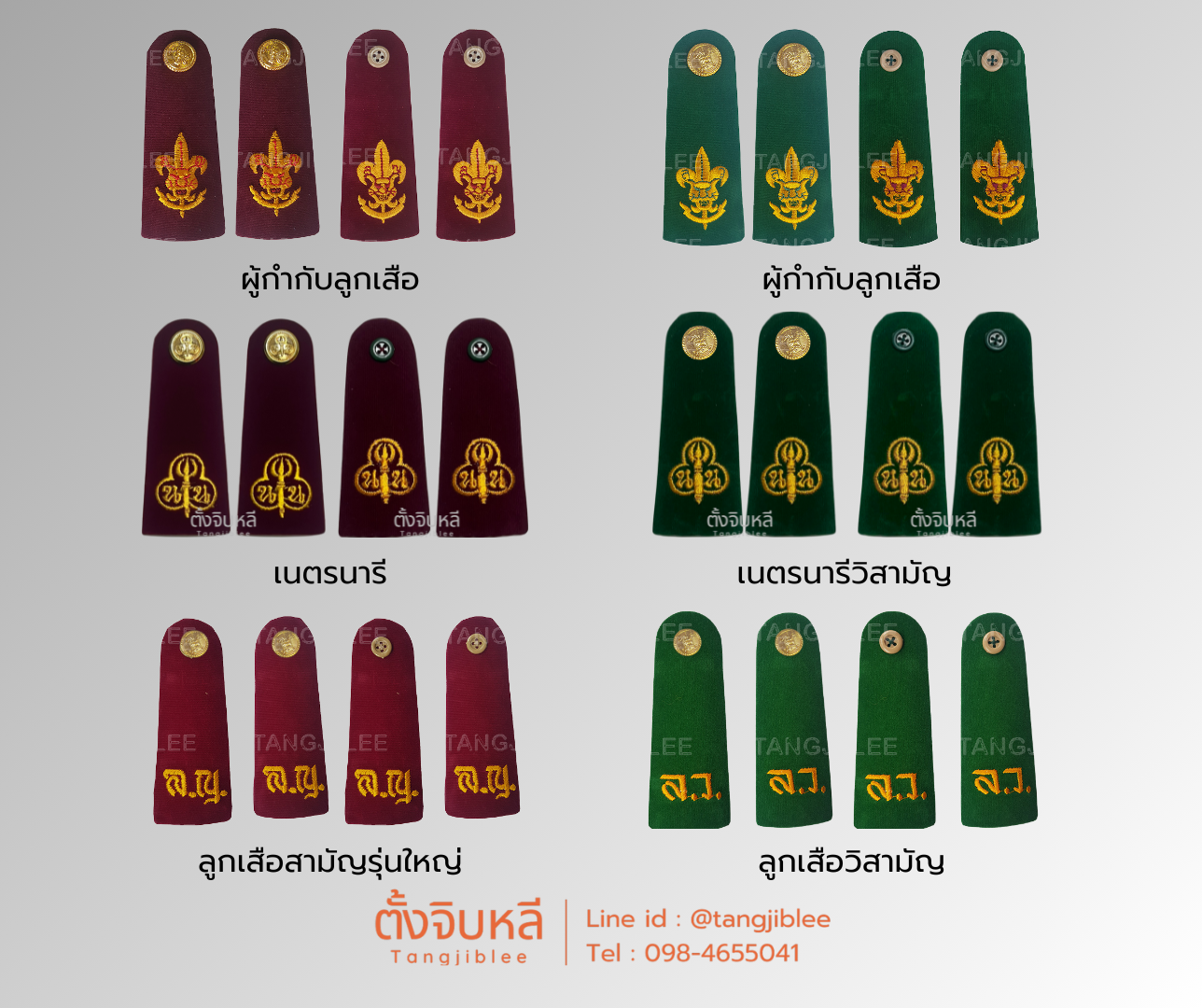 อินทรธนูผู้กำกับลูกเสือ, ลูกเสือ, เนตรนารี (สามัญรุ่นใหญ่ – วิสามัญ) กระดุมพลาสติก และกระดุมทอง